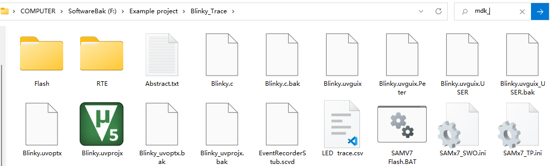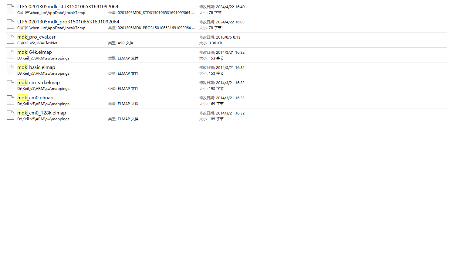 1、打開對應工程的目錄,在工程目錄下或者USERSystem文件夾中搜索以"mdk_"為開頭的文件,將所有搜索出來的文件進行刪除(如圖4-1和圖4-2)。