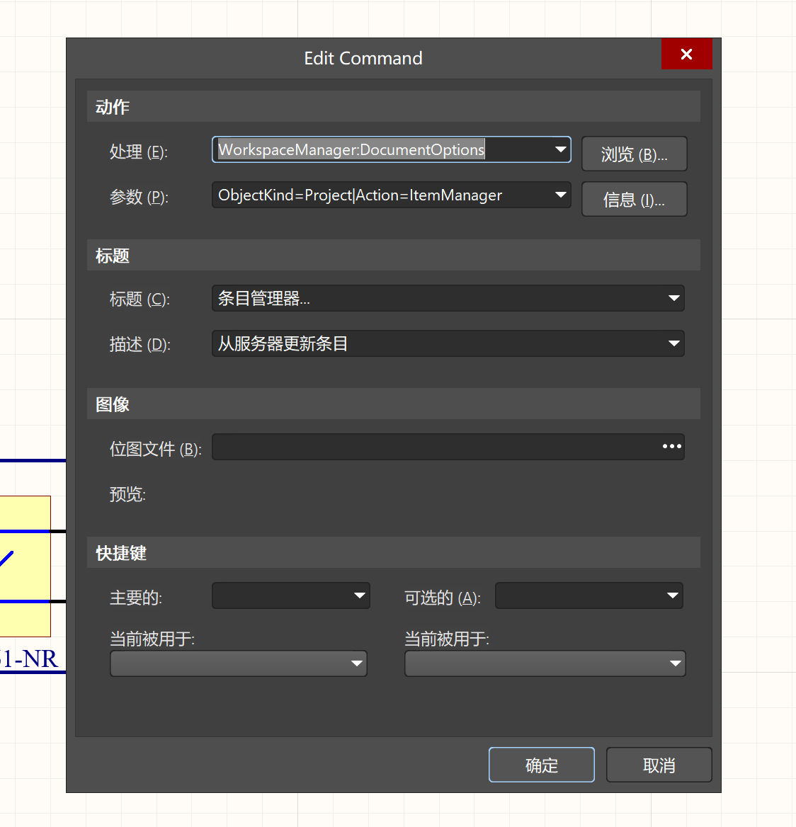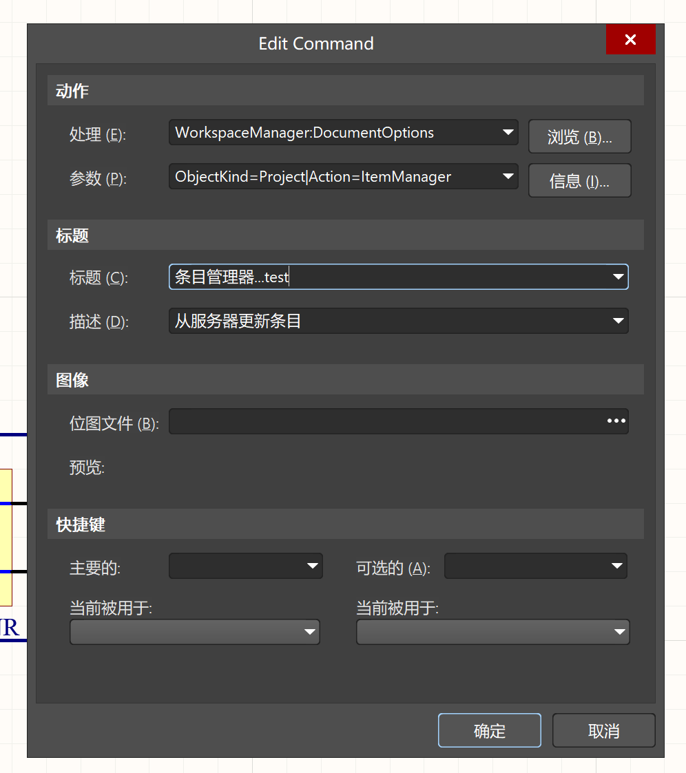 2、按住ctrl鍵同時鼠標左鍵點擊要修改的菜單,會彈出Edit Command窗口,見圖1。