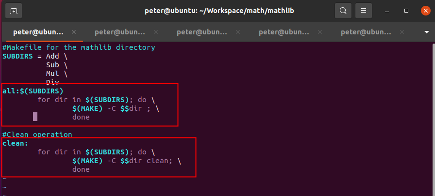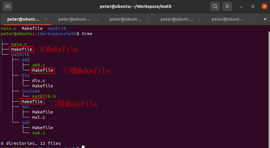 4、通過在主目錄下運行“make”與“make clean”驗證Makefile的嵌套調用