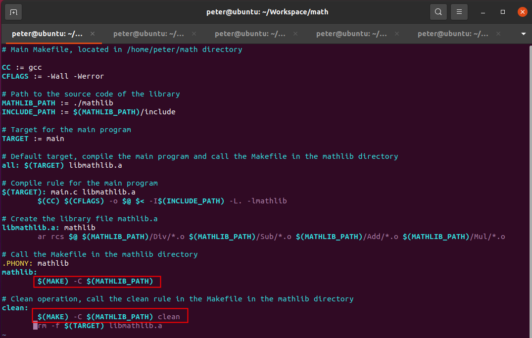 如果需要把庫文件存放在“mathlib”目錄下,需要如何修改Makefile文件的內容。