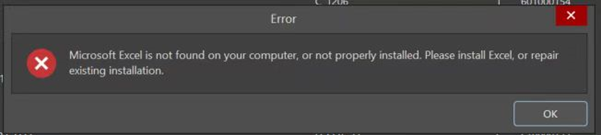 在導出BOM時,出現Error:在您的計算機上找不到Microsoft Excel。
