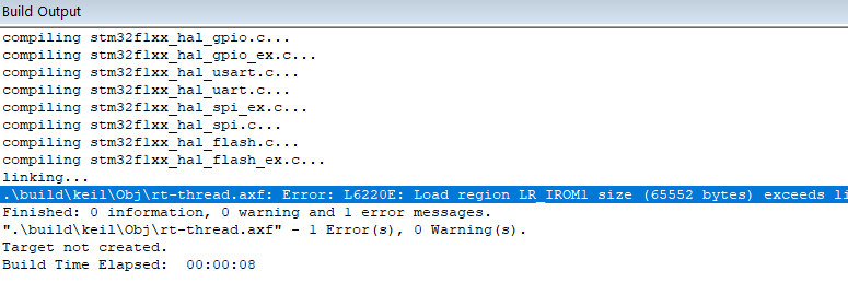 客戶在使用STM32F1的項目編譯時遇到下列報錯Error: L6220E: Load region LR_IROM1 size(65552 bytes)。