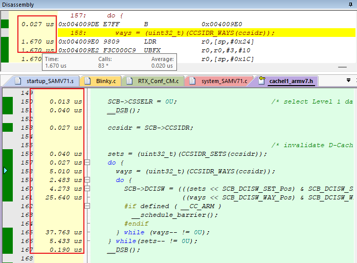 b、使用ULINK pro仿真器,配置Trace功能,使用Execution Profiler功能。(關于如何配置Trace功能,請查看技術文檔中的:Keil MDK Trace功能配置)。