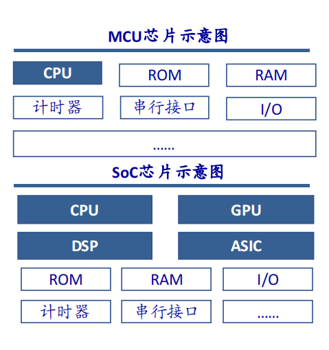 用于了解SOC芯片和MCU芯片的區別,內部結構上的區別。