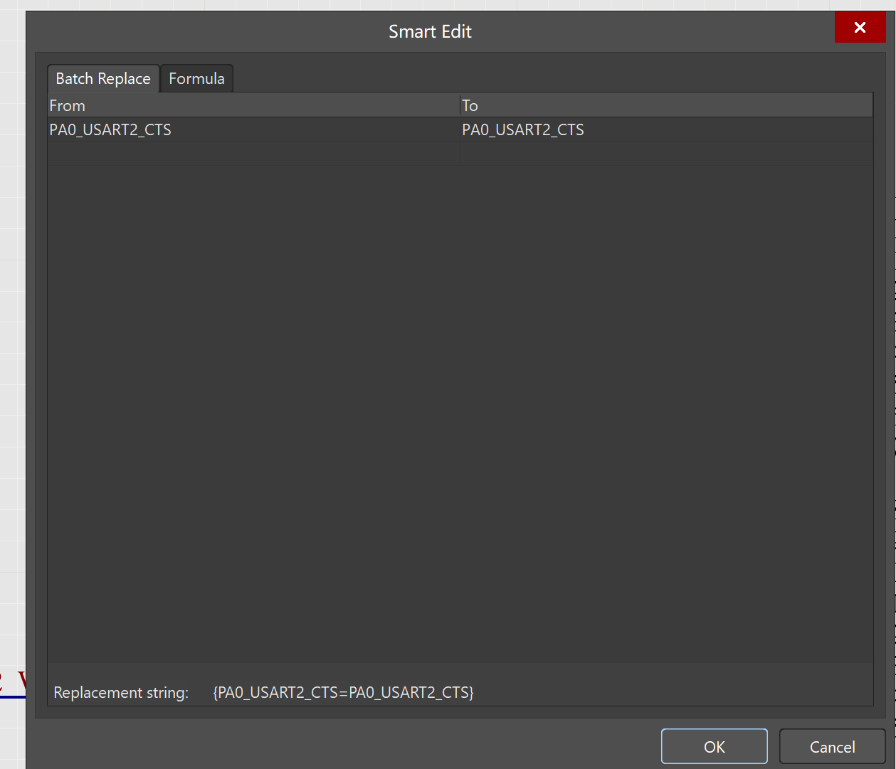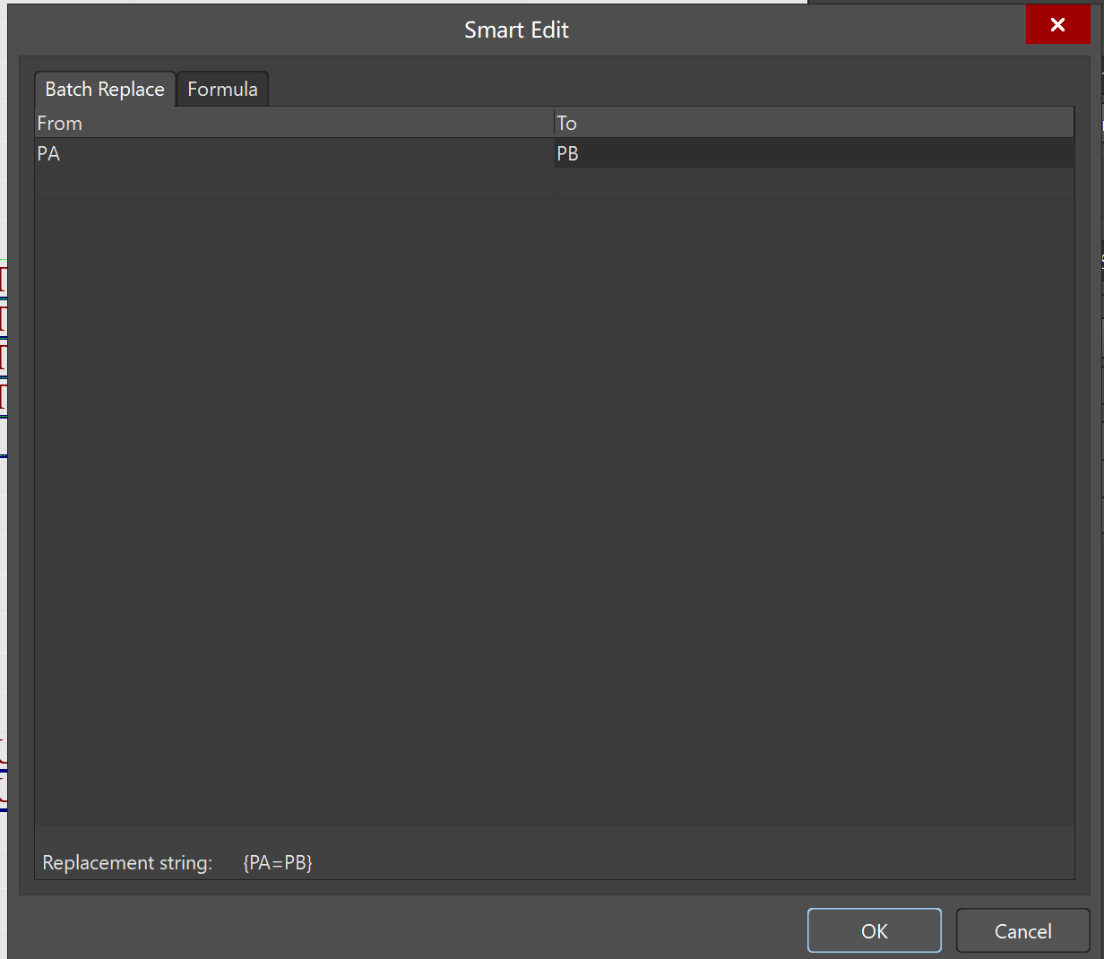 4)、Formula可以將特定的函數表達式用于選定的字符串,表達式可以包含任何適用于字符串的內置函數(在Altiumlive官網可以查詢)。如果要將屬性的當前值用作表達式的一部分,則需要使用屬性的全名或者使用感嘆號來引用此原始值。使用屬性名稱時,如果名稱包含空格,則必須將其替換為下劃線。