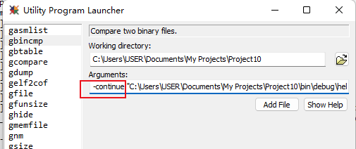 2)、想要使用這個命令的話,可以在MULTI Project Manager窗口中的Tools->Use Utilities打開Utility Program Launcher窗口使用到gbincmp這個執行程序。(如圖4-1和圖4-2)