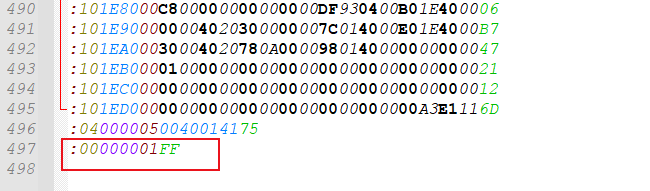 (5)、Hex文件的最后一行數(shù)據(jù):“:00000001FF”