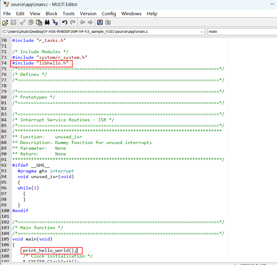 5)、main.c文件有相關靜態庫文件函數和頭文件的調用。