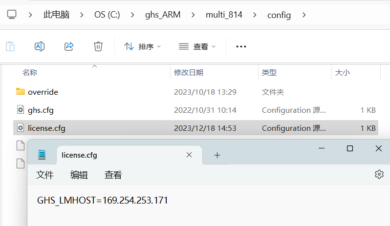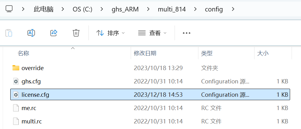 1)、在客戶端電腦的Green hills軟件的安裝目錄下找到"Mutil_xxxconfiglicense.cfg"文件。