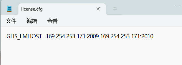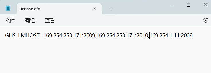 3)、將文本修改為"GHS_LMHOST=169.254.253.171:2009,169.254.253.171:2010"
