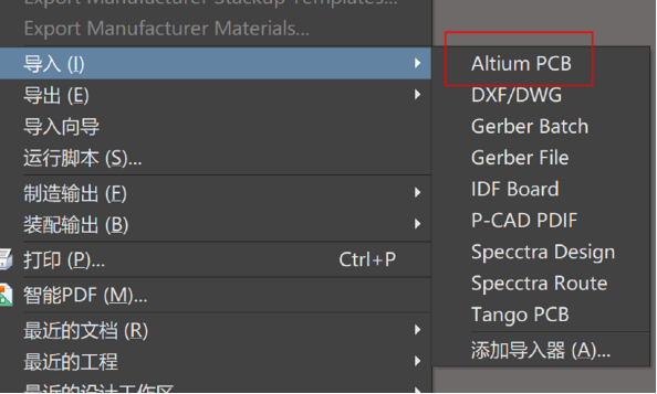 2. 選擇File-Import-Altium PCB, 選中需要導入的.CSPCBDOC文件就可以將這個格式的PCB文件在AD中打開了