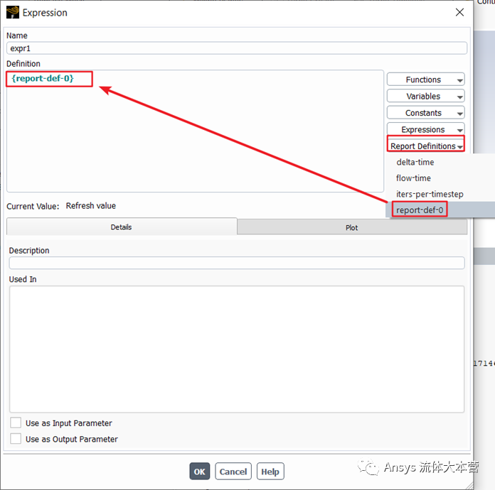 上述命令是說當(dāng)名為“expr1”的表達(dá)式溫度大于300K時,計算自動終止。其中,“3”是pick命令從命令“/define/named-expressions/compute expr1”中提取正確字符串所必需的。
