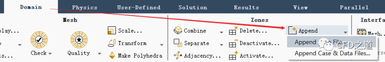 利用工具按鈕Append → Append Case File…讀取前面保存的out.cas文件