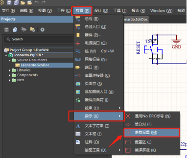 1. 在原理圖中添加參數(shù)設置: