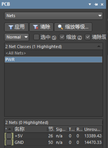 4. 編譯原理圖,并導入PCB,在PCB的對象瀏覽器中可以到相應的網(wǎng)絡類。