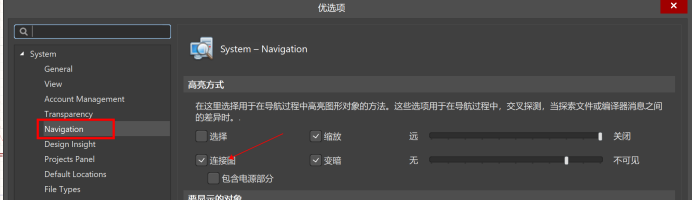 進(jìn)入設(shè)置界面,在System下的Navigation選項(xiàng)中,勾選“連接圖”,這樣設(shè)置,就可實(shí)現(xiàn)這個(gè)功能。