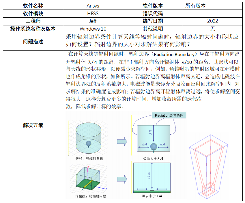 【ANSYS】采用輻射邊界條件計算天線等輻射問題時,輻射邊界的大小和形狀應如何設置?輻射邊界的大小對求解結果有何影響?-2022