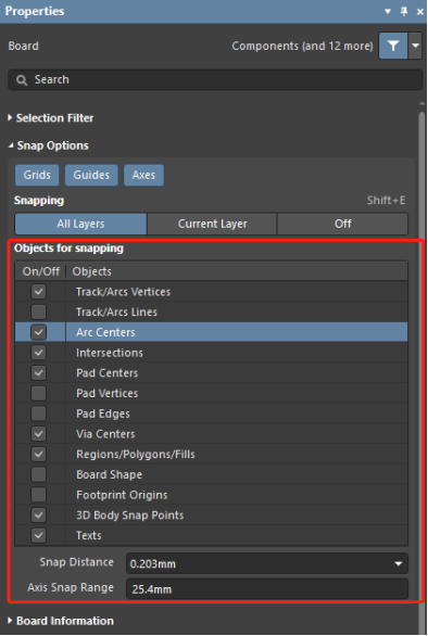 在PCB設(shè)計時精度要求較高,需要使用不同的捕捉對象和不同的捕捉距離,在Altium Designer中提供了多種的光標捕捉。
