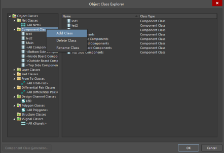 點擊菜單欄中“設計”-->“類”,在“Component Classes”右鍵,“Add Class”新建一個元件類“Clearance”。