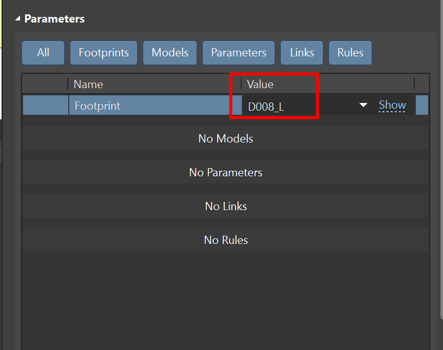 4. 添加成功后,在“Parameter”下的“Footprint”就可以看到添加的封裝,這樣就添加完成了