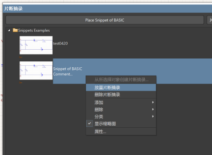 以原理圖為例,點(diǎn)擊右下角【Panels】,選擇【片段摘錄】,打開(kāi)“片段摘錄”對(duì)話框,在這里,可以對(duì)片段摘錄文件夾保存路徑進(jìn)行編輯,也可以對(duì)目前在使用的片段摘錄文件夾進(jìn)行管理。