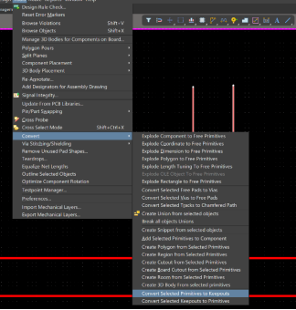 2. 另一種方法可以將電氣層的線轉換為Keep-out。選中電器層需要轉換的線,執行菜單欄“Tools”——“Convert”——“Convert Selected Primitives to Keepouts”,即可將選中的線裝換為帶有Keep-Out屬性的線。