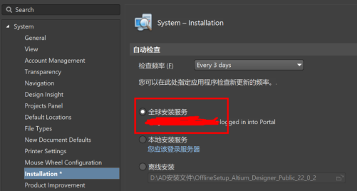 在設(shè)置-System-Installation查看安裝設(shè)置是否設(shè)置為“全球安裝服務(wù)“