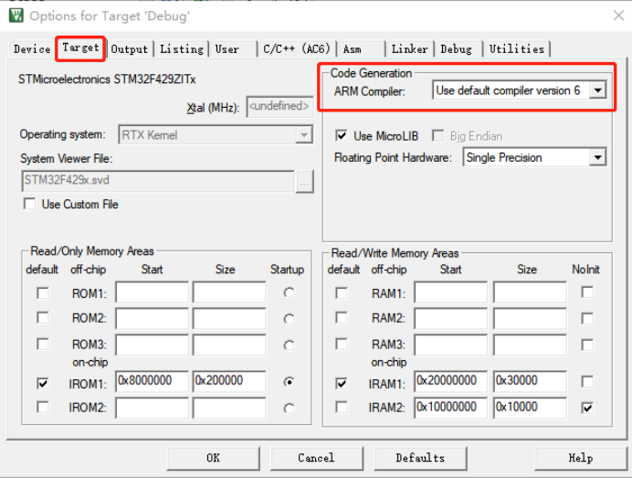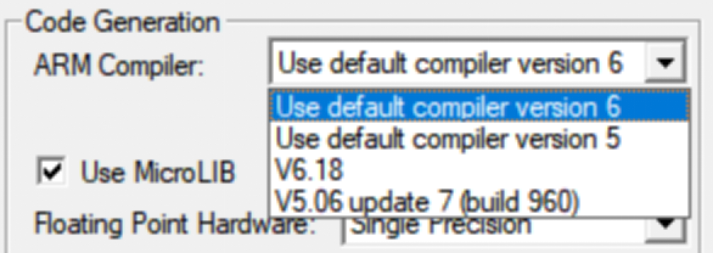 下選擇ARM Compiler后面的下拉選項,根據需要選擇相應的編譯器。