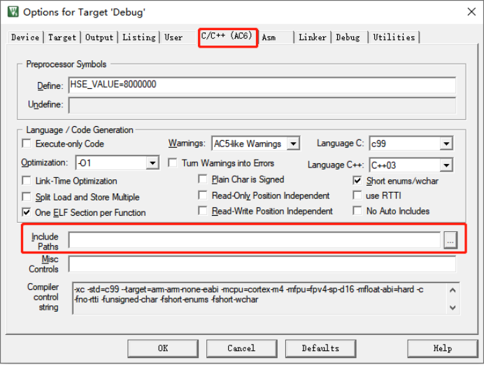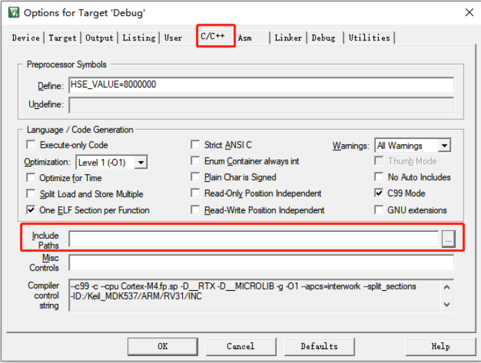 在 μVision5的界面中,設(shè)置編譯包含路徑。