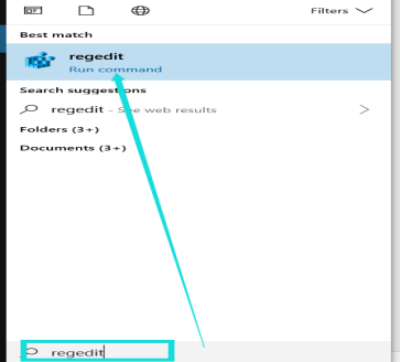 點開開始菜單,在搜索欄中輸入regedit,如下圖: