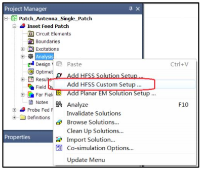 最新版本的 ANSYS Electronics Desktop 已經把 HFSS、Designer 和 Q3D 整合到統一的界面中,在Designer中加入了自定義求解功能,可對于 HFSS 3D Layout 設計自定義求解setup,具體操作方法為如下圖先選擇“Add HFSS Custom Setup”