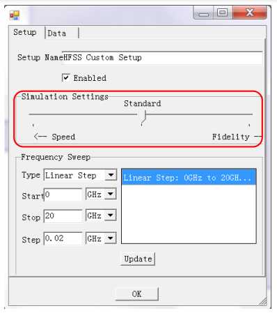 在如下圖的設置界面中,可以人為拖動紅框中的指針,改變仿真設置。中間是軟件默認的狀態,將指針拖動向左表示求解偏向速度,即可在較短時間內得到仿真結果;指針拖動向右表示求解偏向精度,仿真時間較長但結果更加精確可信。該功能可使用戶在仿真速度和精度間作出權衡,在設計初期可采用更快的速度了解設計趨勢,當設計定型后可使用更加精準的求解設置,幫助設計者得到更加真實可信的仿真結果。