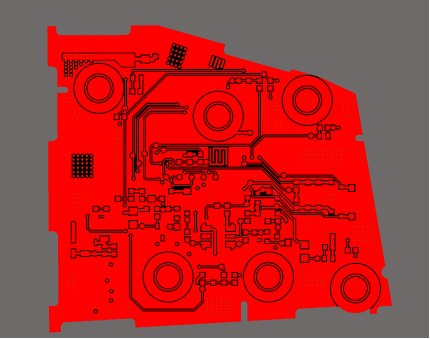 整板鋪銅后效果如圖所示,如果鋪銅是空心的,需要雙擊鋪銅,檢查屬性是否有網絡。