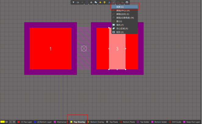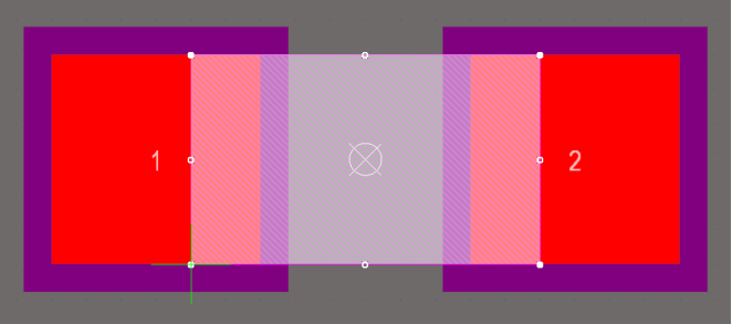 3.設置好一個焊盤之后,由于電阻需要兩個焊盤所以進行復制粘貼。選中焊盤后Ctrl+C光標變為綠色十字后點擊焊盤,Ctrl+V一樣的焊盤出現放在原點處。