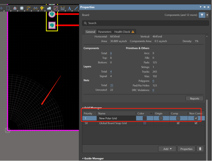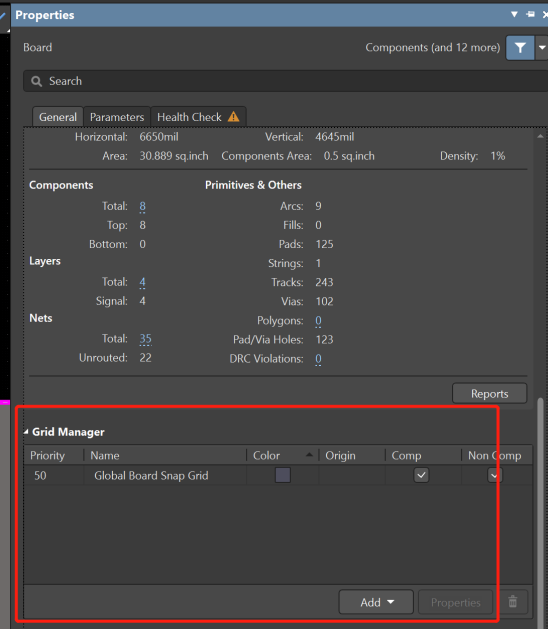 在PCB界面下打開屬性面板,找到Grid Manager一欄