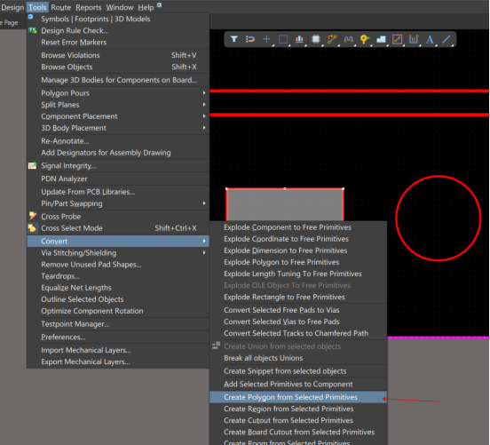在AD中放置鋪銅區域時需要描繪出鋪銅區域的形狀,直接繪制不是很方便,尤其是需要特定形狀的時候,往往難以繪制出需要的圖形。有沒有其他方法能解決這個問題?在AD中其實還可以通過Convert轉換命令來實現。