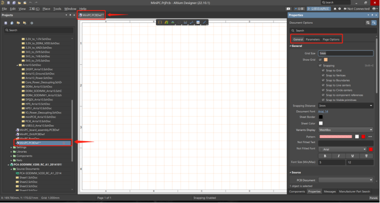 放置板制造圖后,雙擊打開屬性面板,在“Layer”下選擇板層。