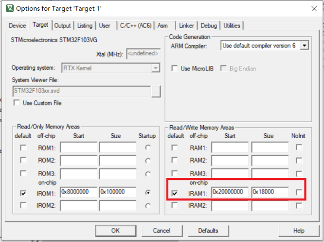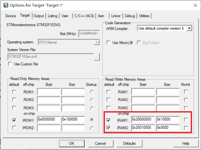 2.原來芯片中IRAM起始地址0x20000000,大小0x18000,見圖2。我們將其拆分兩部分,例如第一部分大小0x10000,第二部分0x8000,見圖3設(shè)置。