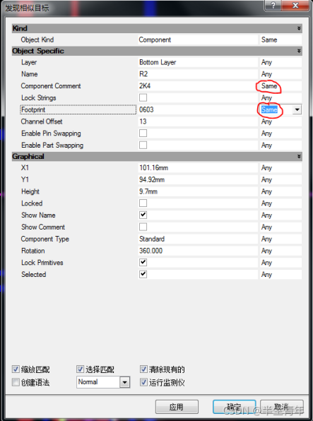 2. 在頁面中找到他們的相似的項,例如它們的值或者封裝會是一樣的,將Any改為Same并點擊確定;