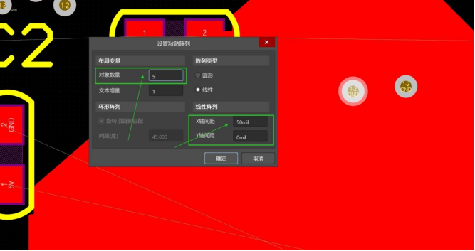 填入過孔數量,對應方向輸入過孔和過孔之間的間距值,
