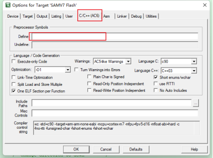 在option for target->C/C++(AC6)->preprocessor symbol->define中進行預定義。