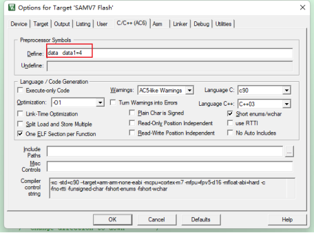 在keil mdk的工程配置中可以進行預定義,這樣做目的是在于工程師可以更好的管理預定義,不需要在每個文件中都去根據需要進行預定義,在工程配置中定義的宏是可以引用到整個工程當中的。