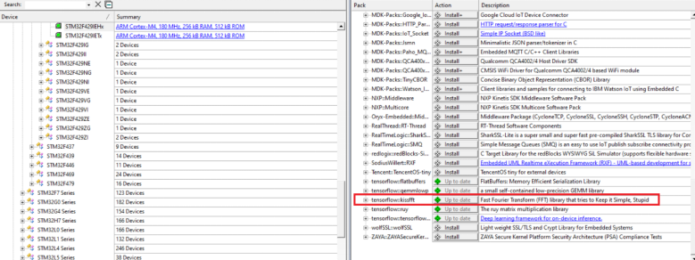 2.找到kissfft選項,單擊Install按鈕,保持電腦聯網,keil會幫我們下載相應的安裝包并安裝。