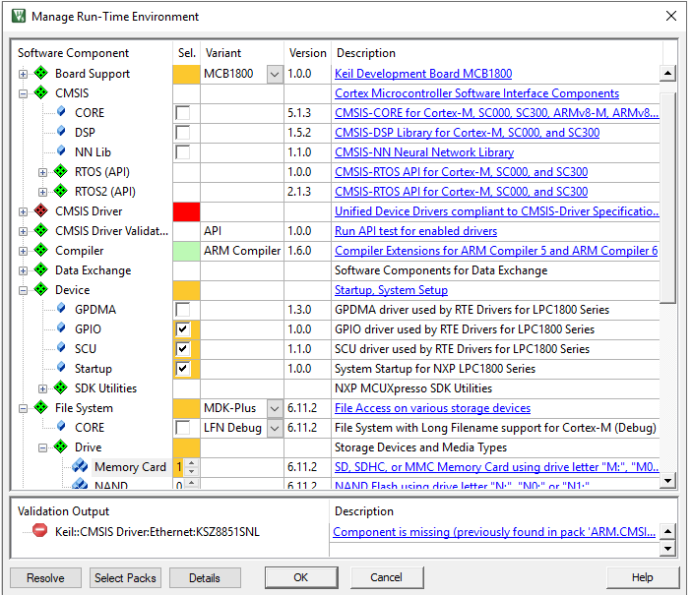 【ARM】Keil MDK中Managing Run選擇對應組件后,不同背景色的意義