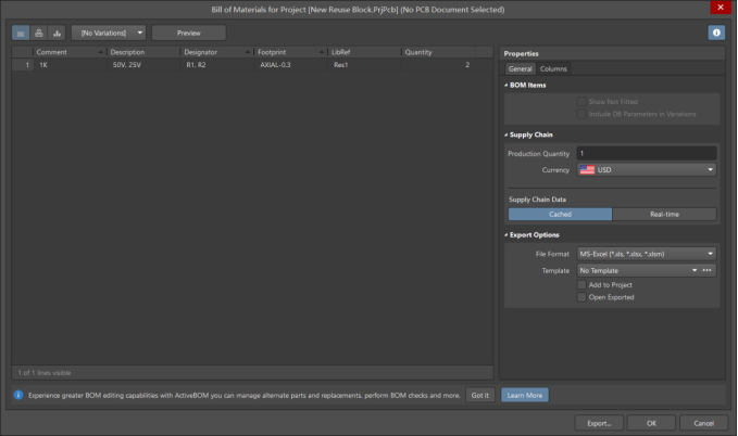 在BOM中此元器件的信息基本相同,但是Description對元器件的規格描述存在差異。默認打開BOM時,Description信息是不作為篩選條件的,如何添加為篩選條件,進行如下操作。