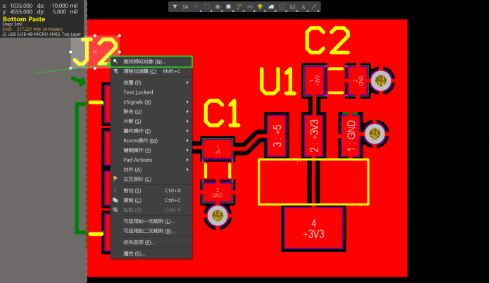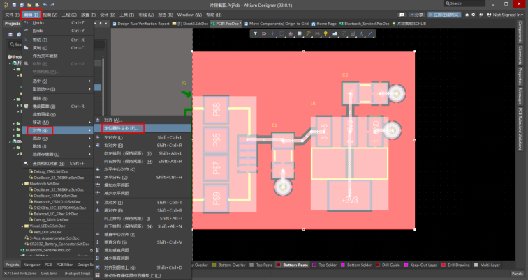 將板信息全部框選中,點(diǎn)擊【編輯】【對(duì)齊】【定位器件文本】或點(diǎn)擊快捷鍵【A+P】;