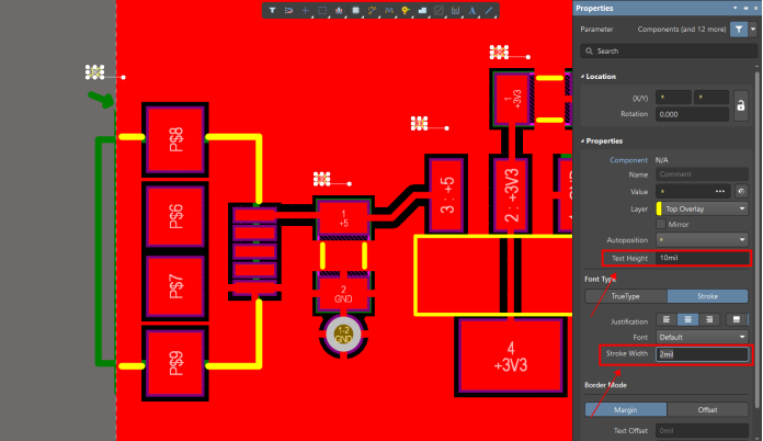 絲印信息未調(diào)整時(shí),會(huì)顯得很大和占用板空間較多。