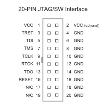 在JTAG接口中單數(shù)接口為功能端口,雙數(shù)端口為電源端口(VCC)和接地端口(GND)。我們主要的對于單數(shù)端口的具體作用進行簡單的說明。