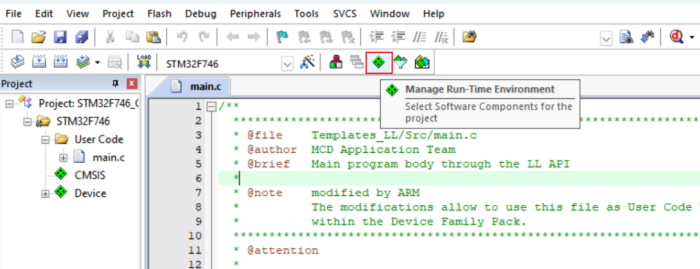 1)點擊工程的“Manage Run-Time Environment”管理器”的快捷鍵,如圖4-1所示: