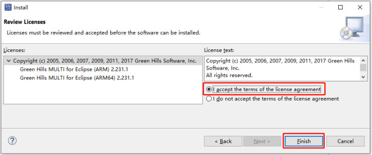 9 至此在S32 Design Studio安裝GreenHills 編譯器結束。